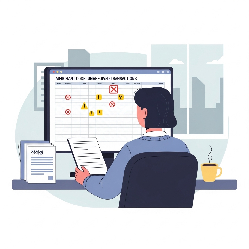 업종코드 확인 → 등록 카드 대조 → 승인내역 캡처